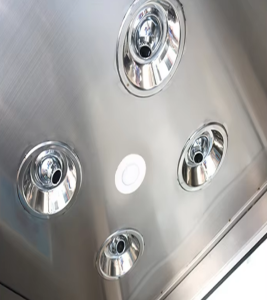 Featuring a specially designed 360° rotating nozzle, the Deiiang™ Person Air Shower ensures comprehensive coverage. This system eliminates dead spaces during the blow-down cycle, providing a thorough and efficient decontamination process for personnel from all angles.